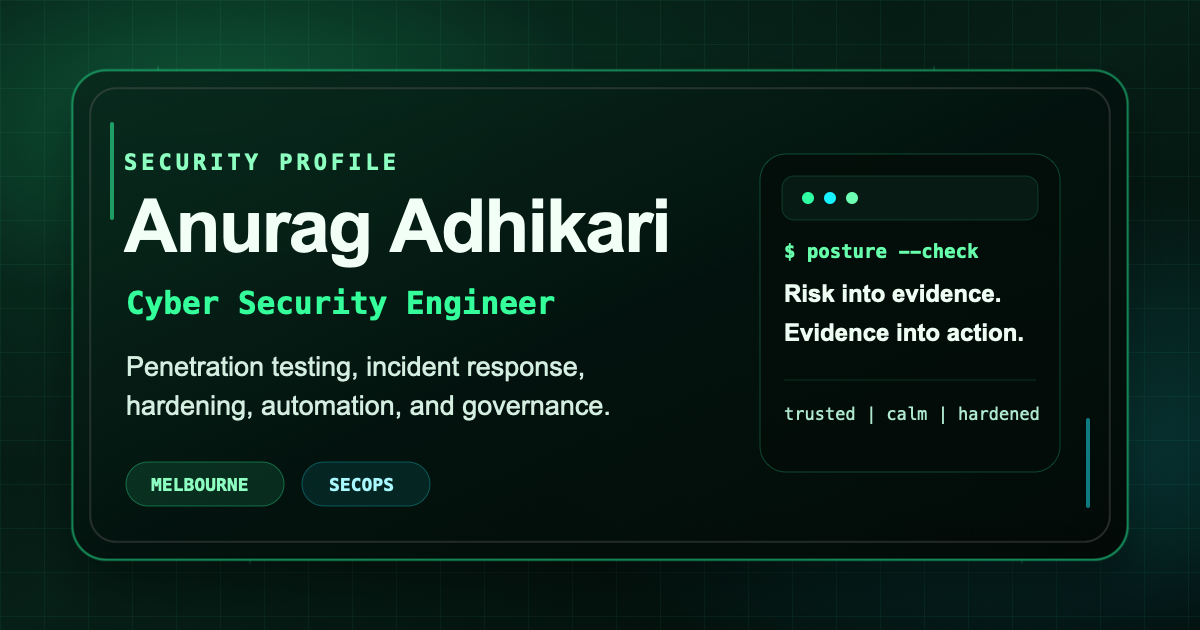 I'm a Security Engineer with over 8 years of experience across penetration testing, incident response, digital forensics, environment hardening, automation, and compliance. I like work that is technical, evidence-led, and practical: find the risk, prove it clearly, fix it cleanly, then make the fix repeatable.